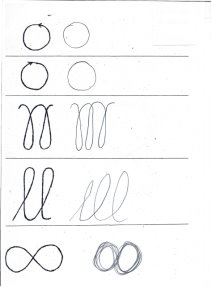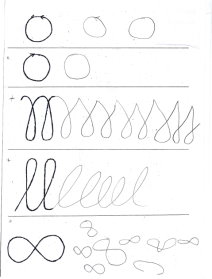 Schreiben lernen. Sie weiß, wo rechts und links ist und braucht die